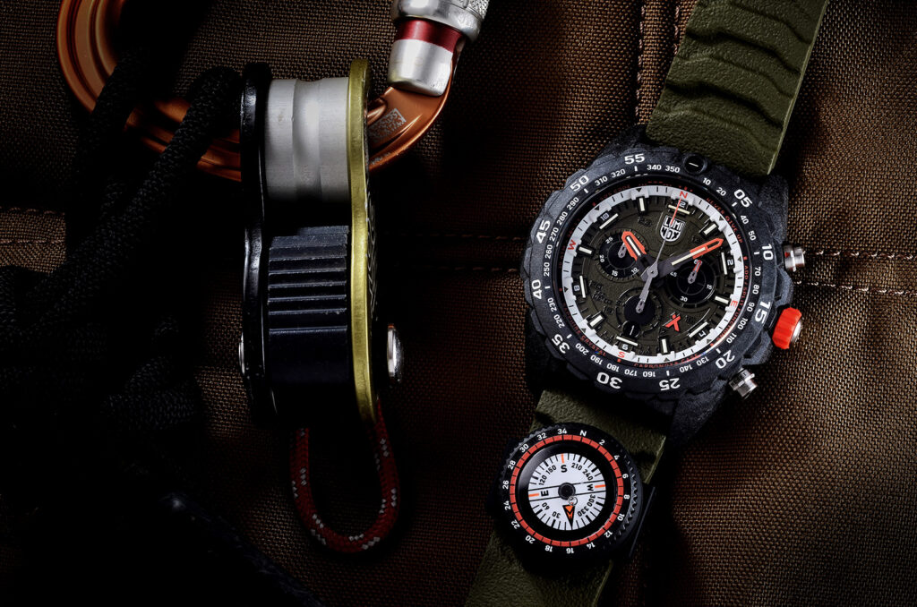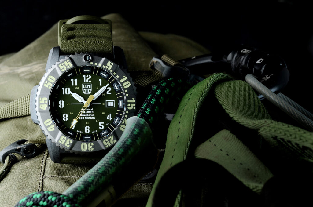 今回採用した「オリーブ」は、Luminoxが追及してきたカモフラージュを体現したカラーであり、ダイヤルやフォント、さらにはストラップに至るまで、細部にわたり繊細な調和を生み出しています。自然に溶け込み表情を変えるその色彩は、静かに、しかし確かな存在感を放ちます。