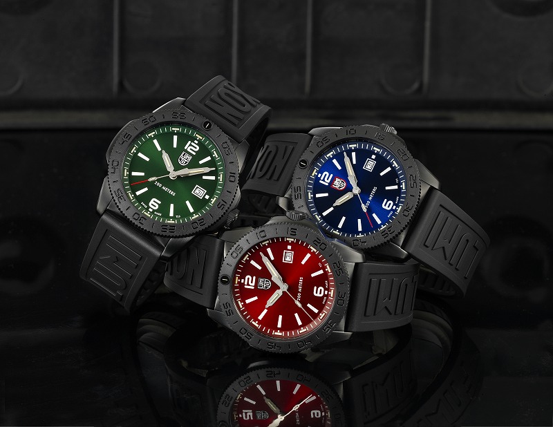 水中で活躍する人々のためにデザインされたこのモデルは、高性能エンジニアリングと大胆で都会的なデザインを融合。ミッドナイトタイドブルー、エメラルドグリーン、クリムゾンサージレッドの3色の鮮やかなサンレイダイヤルで、それぞれ異なるトーンで個性を表現をしつつ、耐久性、視認性、精度において高い基準を維持しています。