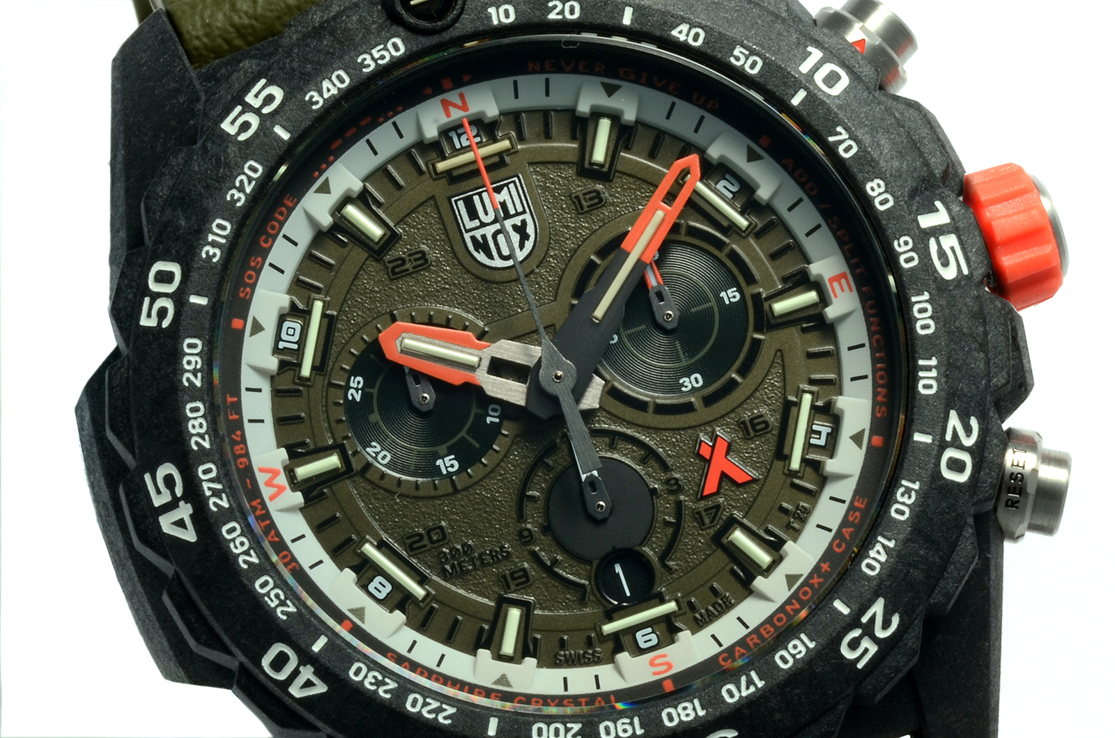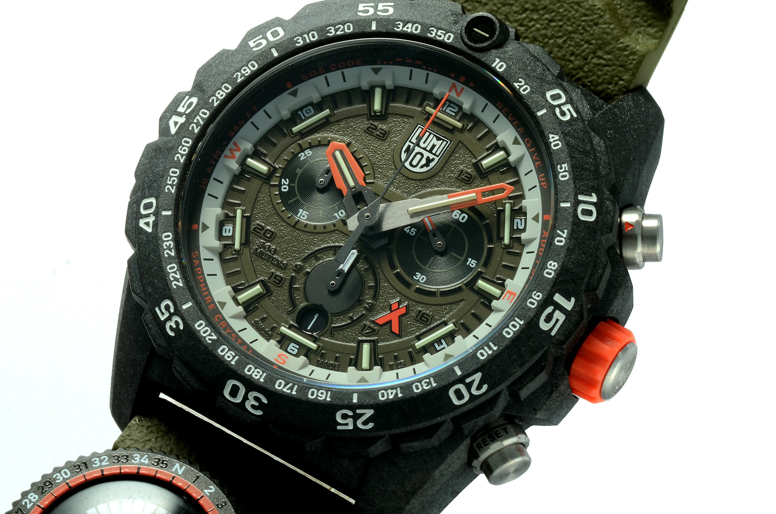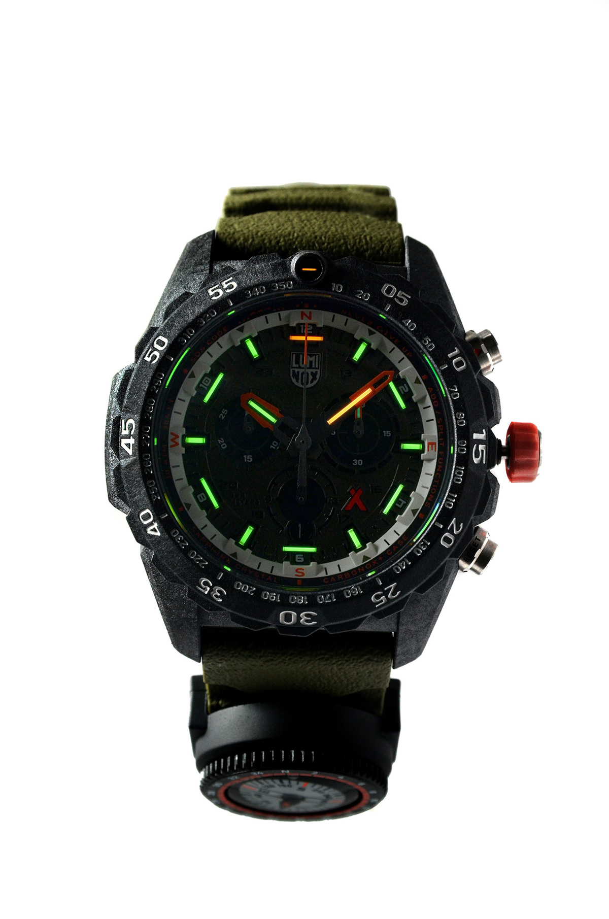 今回採用した「オリーブ」は、Luminoxが追及してきたカモフラージュを体現したカラーであり、ダイヤルやフォント、さらにはストラップに至るまで、細部にわたり繊細な調和を生み出しています。自然に溶け込み表情を変えるその色彩は、静かに、しかし確かな存在感を放ちます。