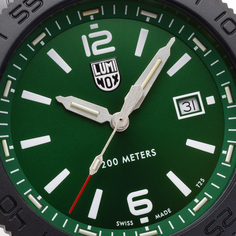 針やインデックスに採用されている【ルミノックス・ライト・テクノロジー】は、自己発光システムのため、外部光や充電を必要とせず最長25年間発光するため、通常の如何なる時も瞬時に計時できる視認性を誇る不可欠なツールとなっています。